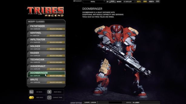 The issue of unbalanced matches is a real problem, and it needs to be addressed by Hi-Rez Studios, but my major hangup with Tribes: Ascend is actually far more removed from the minute to minute action. See, Tribes is free-to-play, and that means you can download it and play it as long as you like without paying anything. Instead, the game brings in revenue by charging players for optional in-game purchases of experience boosters and new gear. You can unlock all weapons and armour by spending the experience gained in the game, but the rate of experience gain is so glacially slow (especially for players who haven’t made any in-game purchases) that it could take weeks of serious daily play to unlock a single new weapon, even if you’re a pretty capable player. And this wouldn’t be a problem if the unlocks were simply fun alternatives to strong default weapons. But unfortunately many classes are at a marked disadvantage if they’re lacking certain premium equipment. It’s not exactly pay-to-win, but it’s certainly a problem.